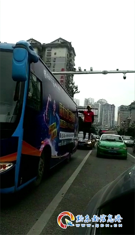 李永權的說法得到了凱里市公安局交警大隊的證實,記者采訪獲悉,此次巴士懸浮表演確實已在交警隊進行了報備,而且巴士的路線都是規劃好的,警車一路跟隨,巴士車上也有交警。