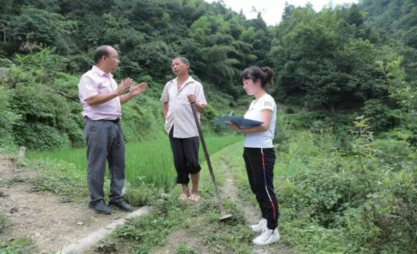 圖為調(diào)查組人員深入田間地頭核實農(nóng)村公路建設(shè)中的資金使用情況