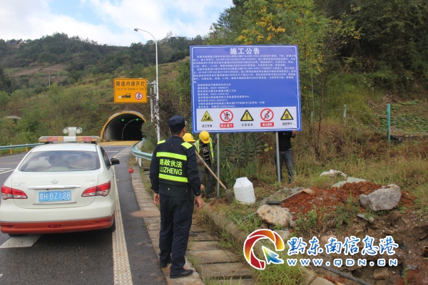 丹寨路政執法大隊在此提示廣大司乘人員駕車行駛高速公路,如遇前方施工請第一時間減速行駛,隨時觀察路況,保障他人和自身的生命財產安全。(梁明輝 陳新強)