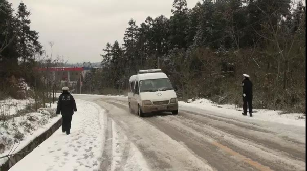 12月31日 黎平縣公安交警大隊接電話求助稱有一名孕婦在送往醫院途中,因道路雪凝嚴重,急救車輪胎打滑,車輛被困,情況十分危急,需要救助。