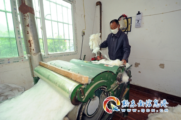 在幫扶干部的幫助下,他購買了一臺新棉花機,開起了棉被小作坊,平均每月有3000多元的收入。子女也通過就業扶持,在城里找到了工作。