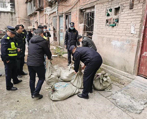 本次行動(dòng)主要對(duì)民政巷、物資巷、二商場(chǎng)、金玉商場(chǎng)等周邊活禽交易和住宅區(qū)飼養(yǎng)活禽進(jìn)行整治。通過巡查發(fā)現(xiàn),位于市建二公司樓棟宿舍內(nèi)和樓下柴棚有人私自飼養(yǎng)活禽,數(shù)目較多,執(zhí)法人員當(dāng)即對(duì)私自飼養(yǎng)的活禽進(jìn)行裝袋暫扣。