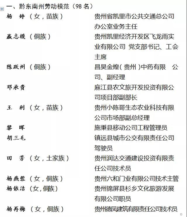 黔東南州勞動模范和先進工作者名單來了,看看哪些人上榜