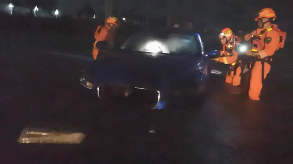 9月6日晚,劍河縣城區出現暴雨天氣,雨量達到90毫米。21時43分,劍河縣消防救援大隊接到求助電話稱:在劍河縣城江北岸往川洞方向,一輛私家車在行駛至該路段時,由于積水嚴重,車子在道路低洼處熄火,又因天黑無法了解車外情況,于是報警請求救援。