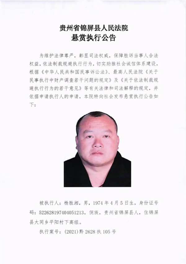 賞金獵人看過(guò)來(lái)!錦屏縣人民法院懸賞執(zhí)行公告