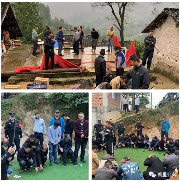 2020年10月17日下午,凱里市公安局禁賭掃黃大隊聯合治安專班、特巡警大隊、刑偵大隊等部門搗毀一個聚眾在凱里市旁海鎮某村賭博窩點。現場抓獲涉嫌參與賭博人員21人,扣押賭資3000余元、賭博工具斗雞18只。