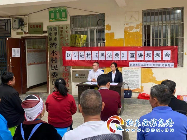 本網訊 4月23日,貴州貴信律師事務所李勇、潘帥芯律師到灣水村召開壩壩會進行《民法典》宣講,增強村民的法治意識,營造依法辦事、理性解決問題、化解矛盾靠法的良好法治環境,同時也為有需要的村民及時提供相關法律咨詢等服務。