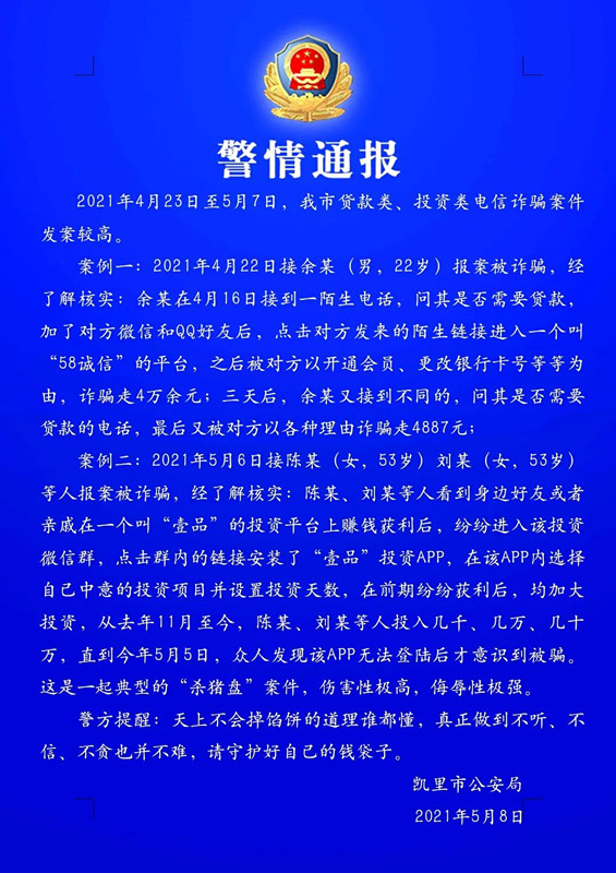 警方提醒:天上不會掉餡餅的道理誰都懂,真正做到不聽、不信、不貪也并不難,請守護好自己的錢袋子。