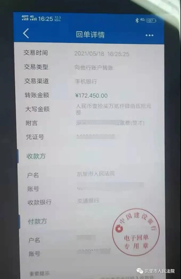 值得一提的是,5月18日下午,被送至拘留所李某某在法院強(qiáng)制措施的震懾之下,已經(jīng)將案件款17萬元支付至法院,案件執(zhí)行完畢。
