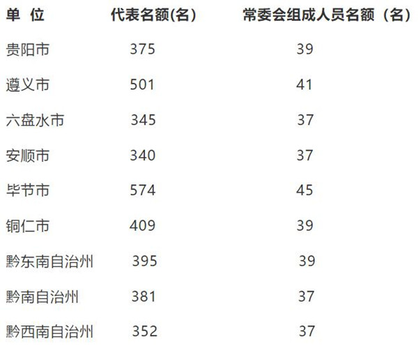 貴州省人民代表大會常務委員會關于全省新一屆設區的市、自治州人民代表大會代表名額和人大常委會組成人員名額的決定