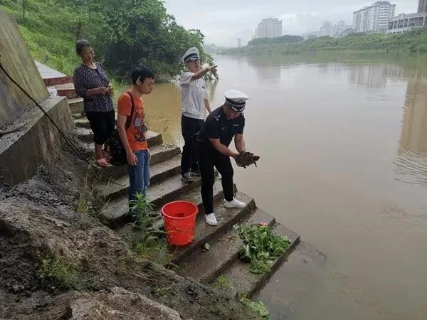 執(zhí)法隊員對平胸龜身體進行了全面檢查,發(fā)現(xiàn)其身體狀況良好,具備野外生存的能力,因平胸龜在鎮(zhèn)遠縣尚屬第一次發(fā)現(xiàn),為確保該野生動物放歸大自然后能夠健康生存和繁殖,執(zhí)法隊員決定就近將其放生在發(fā)現(xiàn)該龜附近的河流中。最終在羊坪鎮(zhèn)政府相關(guān)工作人員的共同努力配合下,成功將平胸龜放歸大自然。
