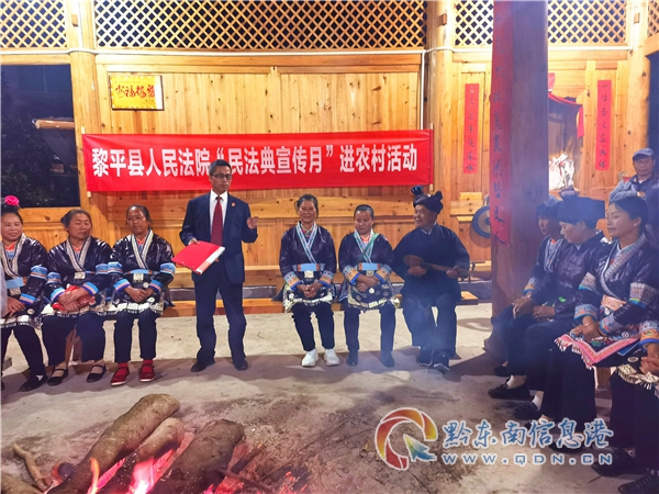5月11日,在黎平縣永從鎮六沖村雅蟬寨的鼓樓里,歌聲陣陣,格外熱鬧,這是黎平縣人民法院與永從鎮聯合開展的民法典宣傳月進農村宣傳宣講現場。